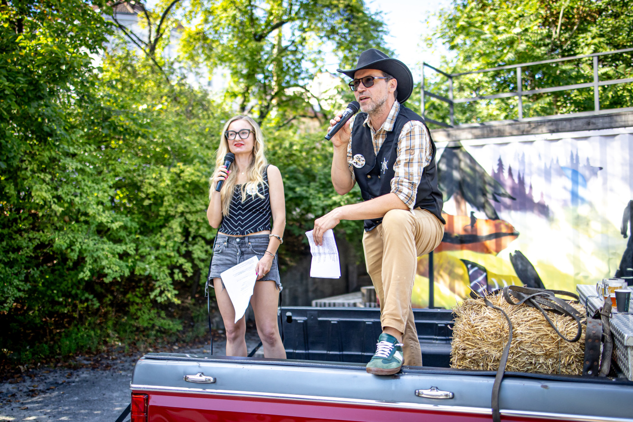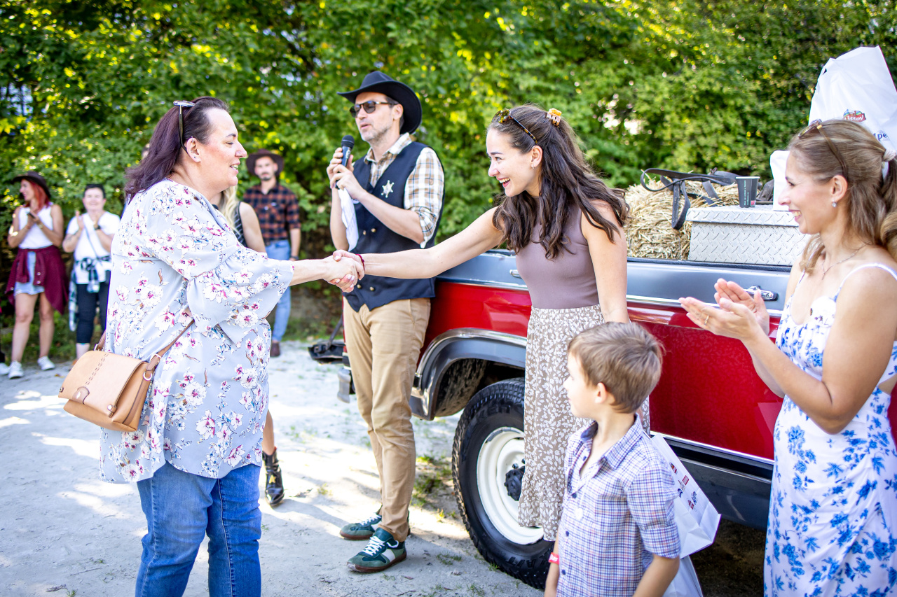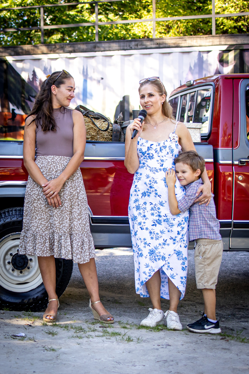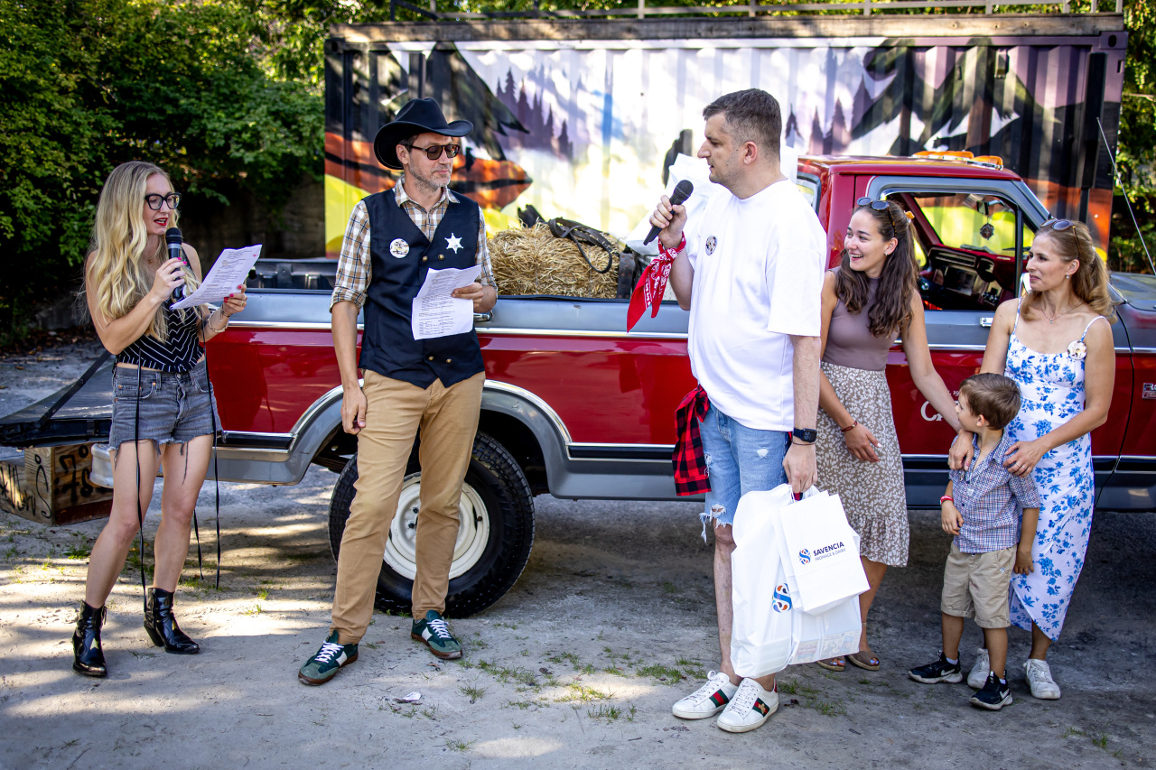 „Chlebem a Regionálními dobrotami jsme ocenili i ten nejlepší country kostým, to prostě jinak nešlo! Odnesla si ho blogerka Bětka z @proste_pila se svojí dcerkou. Ocenit jsme ale měli i našeho milého sledujícícho Tomáše Bederku, který nám půjčil fakt stylovou káru Dodge RAM D 1985, na jejíž korbě jsme s Lukášem akci moderovali.“ říká Adéla.